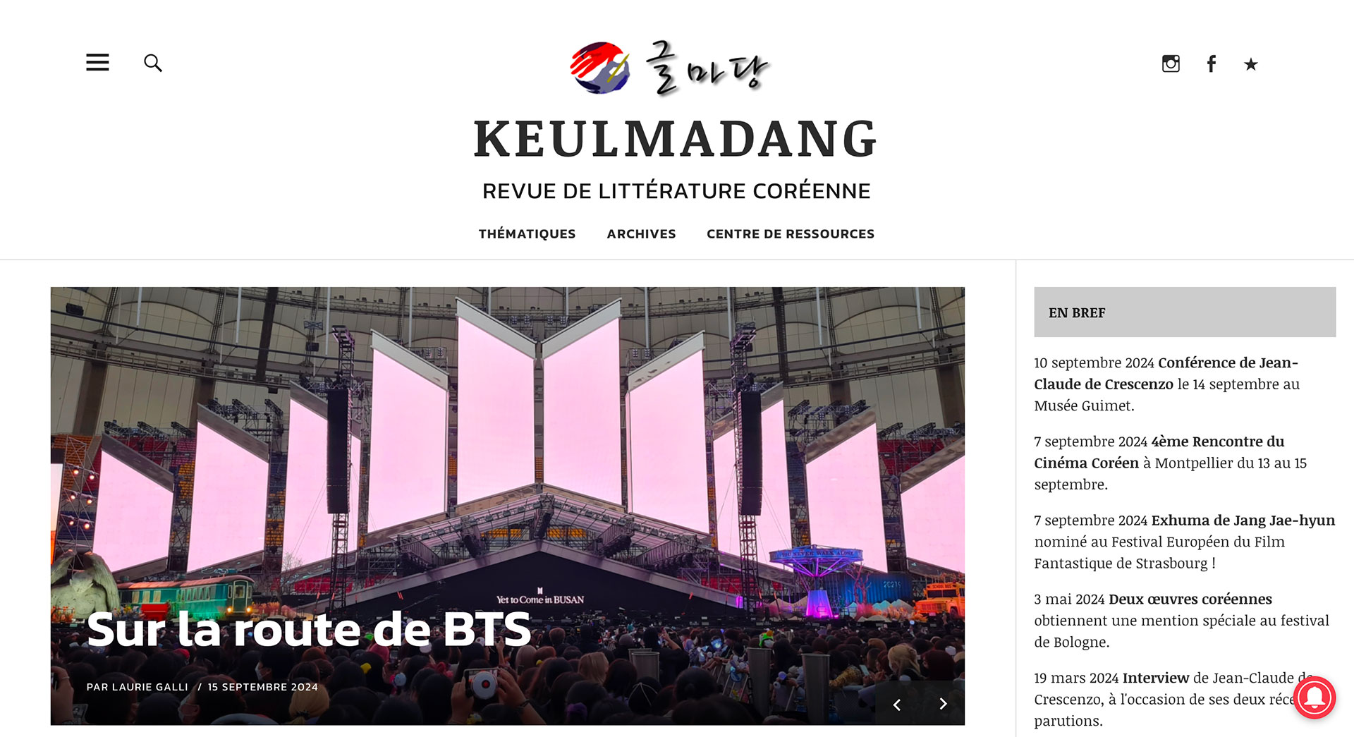Un soir de juin 2009, cinq amis de retour d’une belle journée de promenades entre Français et Coréens décident de créer une revue de littérature coréenne. Le nom est trouvé par Kim Hye-gyeong : ce sera Keulmadang !